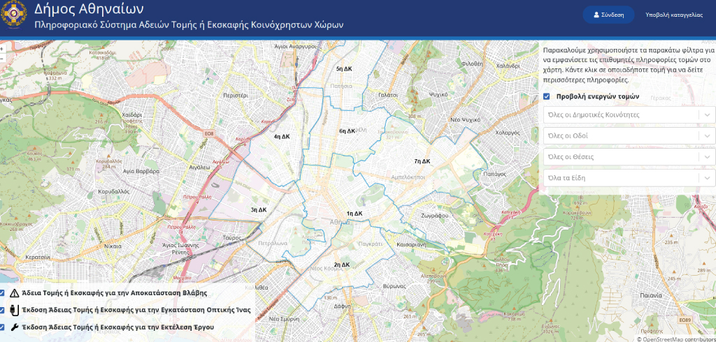 Σε παραγωγική λειτουργία έχει τεθεί η νέα πλατφόρμα «Πληροφοριακό Σύστημα Αδειών Τομής ή Εκσκαφής Κοινόχρηστων Χώρων».