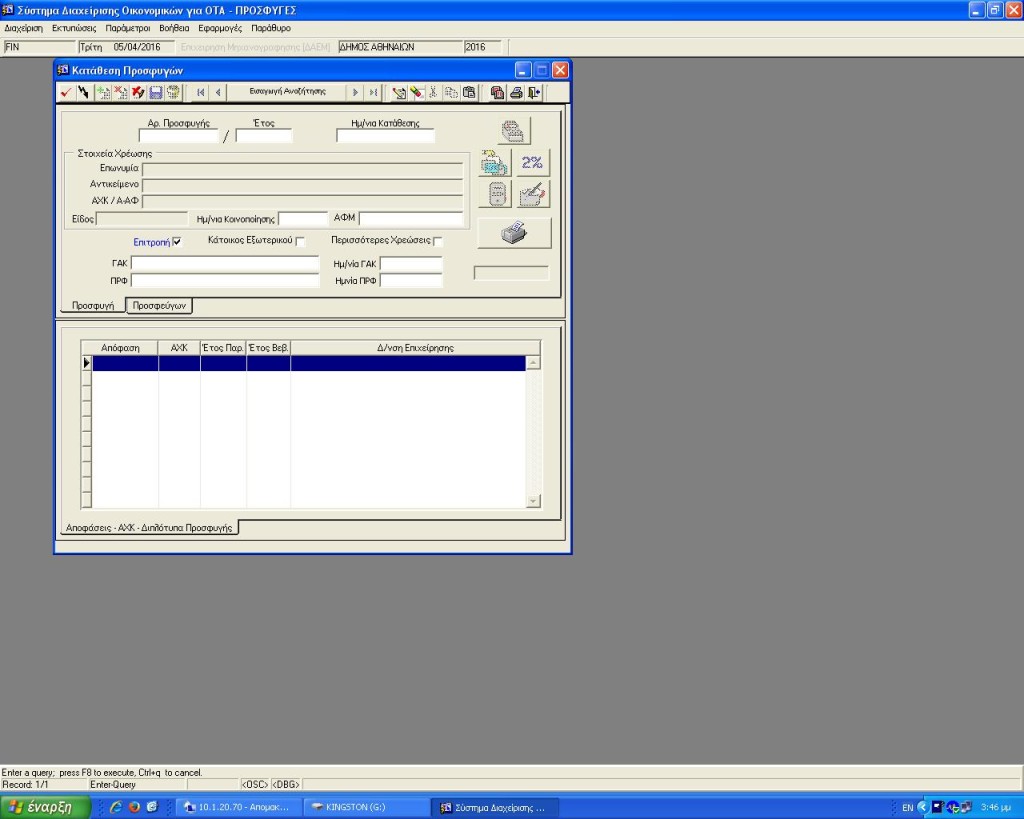 - Σύνδεσης με το κοινό αρχείο υπόχρεων του Οικονομικού Διαχειριστικού Συστήματος και διαχείρισής του (Ονοματεπώνυμο, ΑΦΜ/ΔΑΤ, ΔΟΥ, Διεύθυνση κατοικίας κλπ)