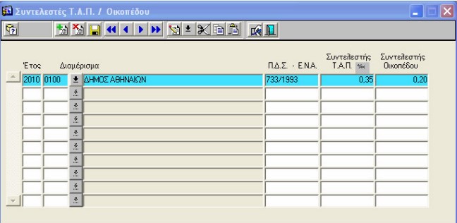 Η εφαρμογή του ΤΑΠ έχει ως αντικείμενο την πλήρη παραμετροποίηση (συντελεστές ΤΑΠ, ΤΚΦ, ΦΗΧ, παλαιότητας, διαμερίσματα, ζώνες, Σ.Α.Ο., Τ.Ο., οδοί κλπ.) με διαχείριση ανά έτος και δυνατότητα εκτυπώσεων ελέγχου.